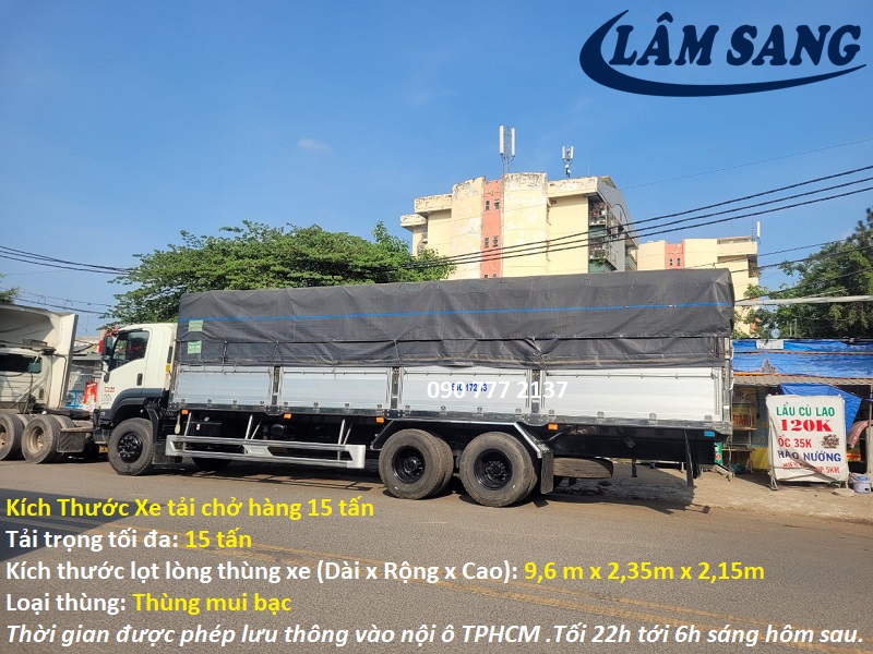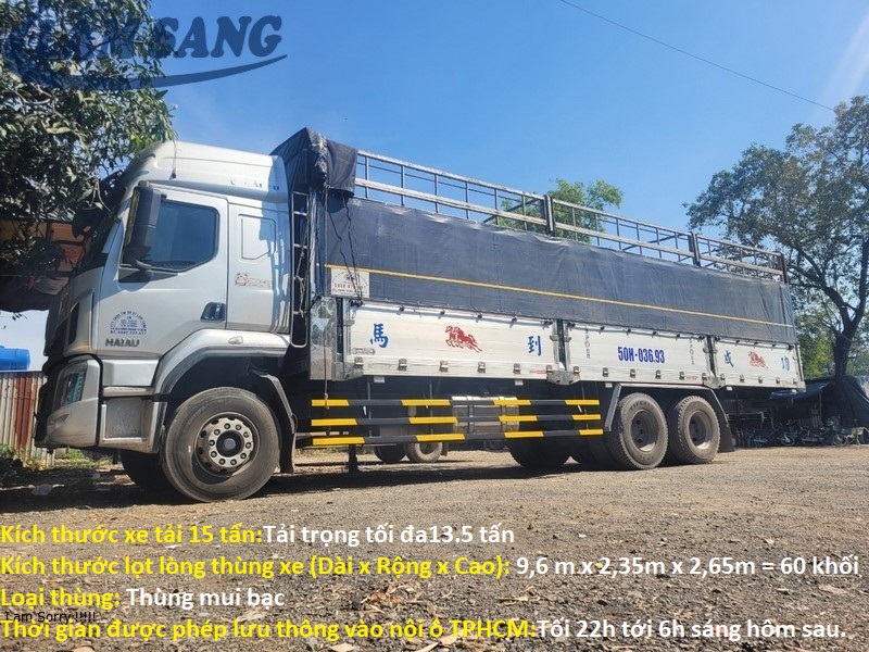 • Kích thước xe tải 15 tấn:Tải trọng tối đa13.5 tấn
