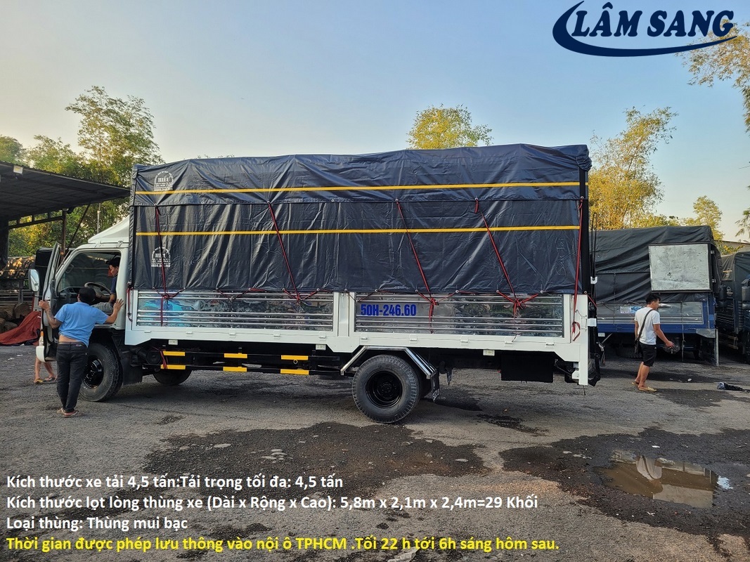 • Kích thước xe tải 4,5 tấn:Tải trọng tối đa: 4,5 tấn