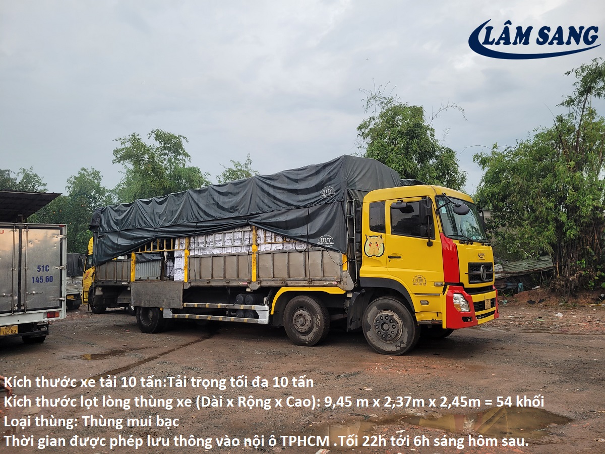 • Kích thước xe tải 10 tấn:Tải trọng tối đa 10 tấn